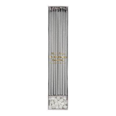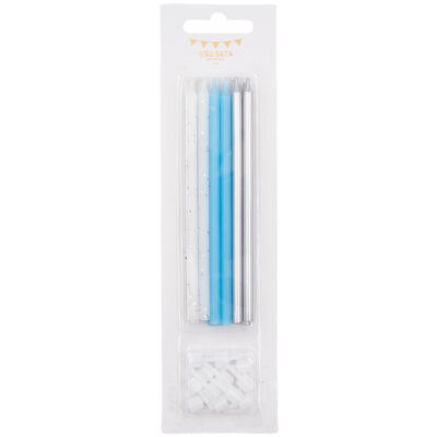 סט 12 נרות ארוכים כסף-תכלת-לבן
