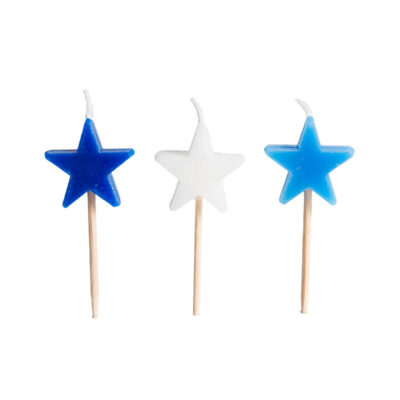 סט 6 נרות קיסם כוכבים כחול-לבן