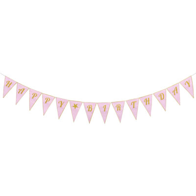 שרשרת HAPPY BIRTHDAY משולשים ורוד | גליטר זהב