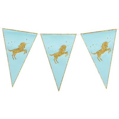 שרשרת 3.5 מטר משולשים תכלת | חד קרן גליטר זהב