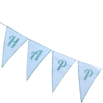 שרשרת HAPPY BIRTHDAY משולשים תכלת | גליטר טורקיז