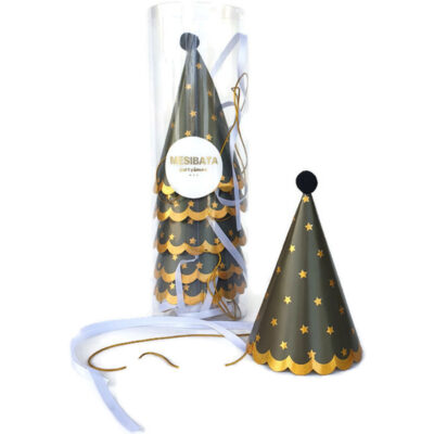 מארז 8 כובעי מסיבה שחור נקודות זהב