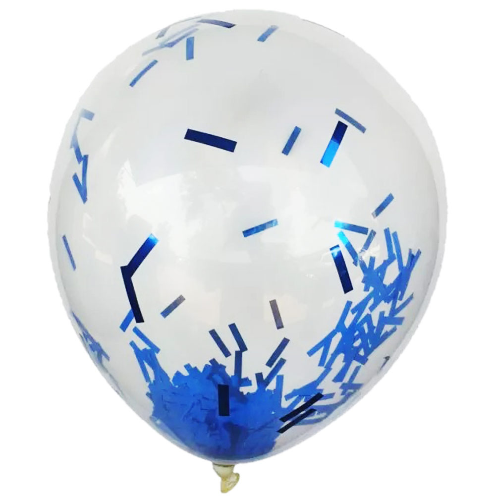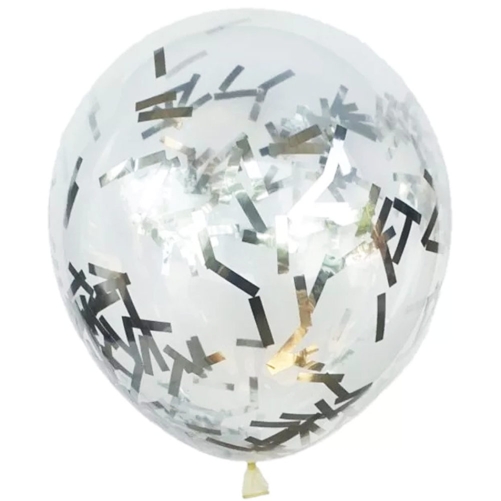 מארז 5 בלונים שקופים במילוי קונפטי ספרינקלס כסוף, למילוי באוויר או בהליום.