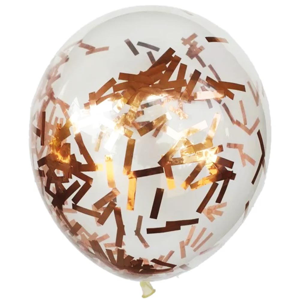 מארז 5 בלונים שקופים במילוי קונפטי ספרינקלס רוז גולד, למילוי באוויר או בהליום.