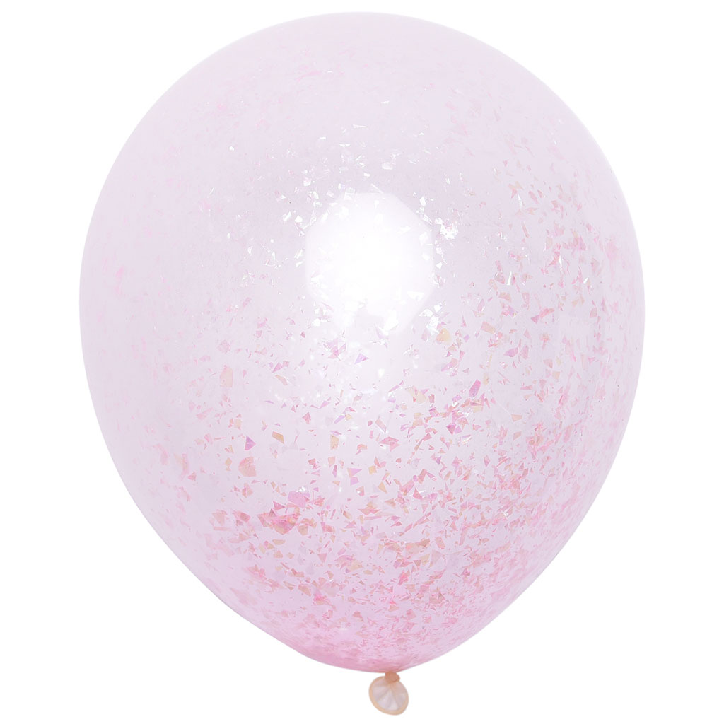 מארז 5 בלונים שקופים במילוי קונפטי ורוד שלג, למילוי באוויר או בהליום.