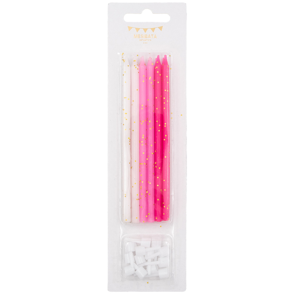 סט 12 נרות מנצנצים לבן-ורוד-פוקסיה