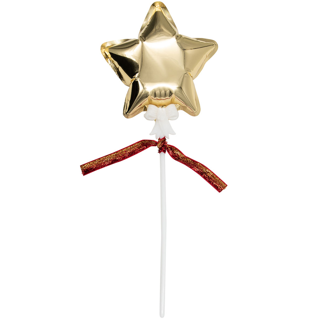 בלון מיני בצורת כוכב בצבע זהב, על מקל עם סרט מנצנץ וסוגר בצורת פפיון. ניתן לשלב כקישוט על עוגה, קאפקייקס או בכל סטאפ מעוצב.