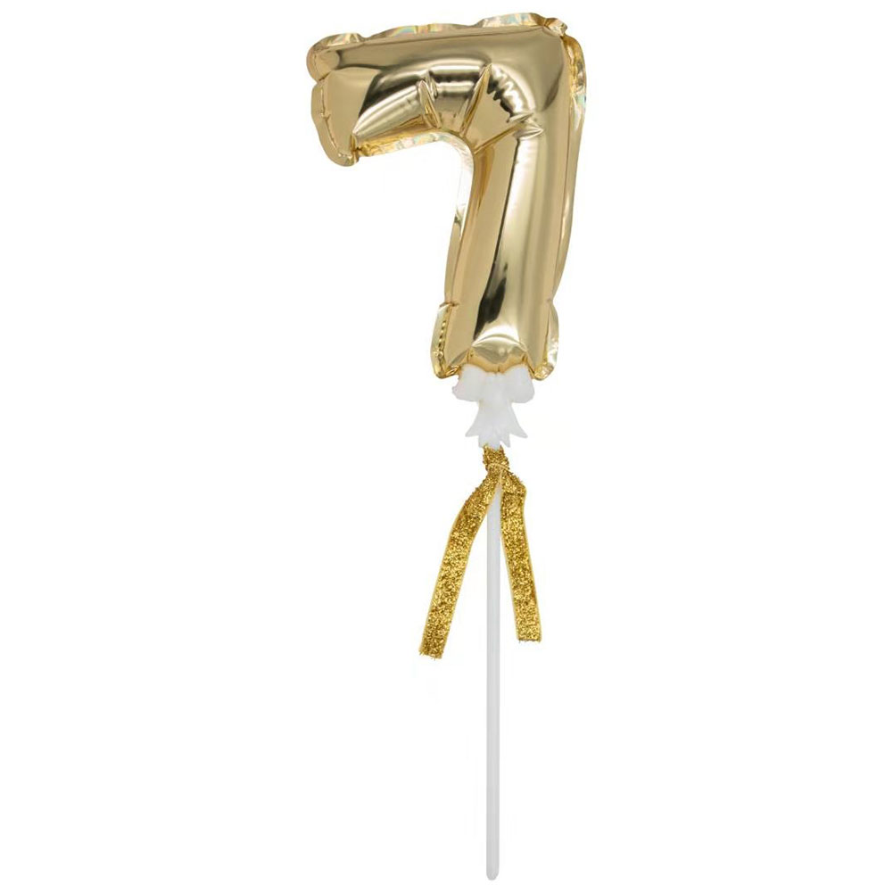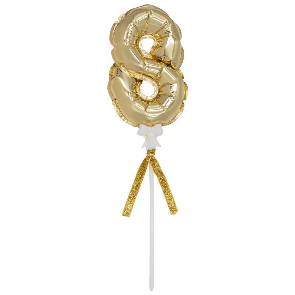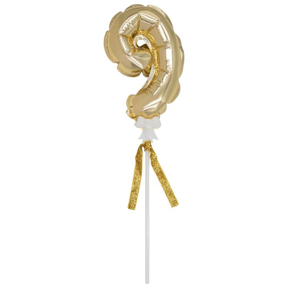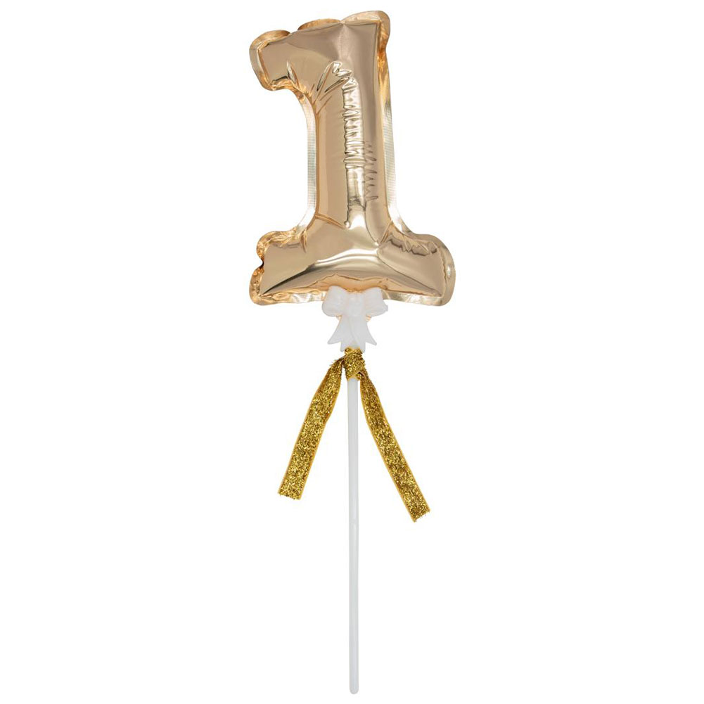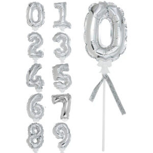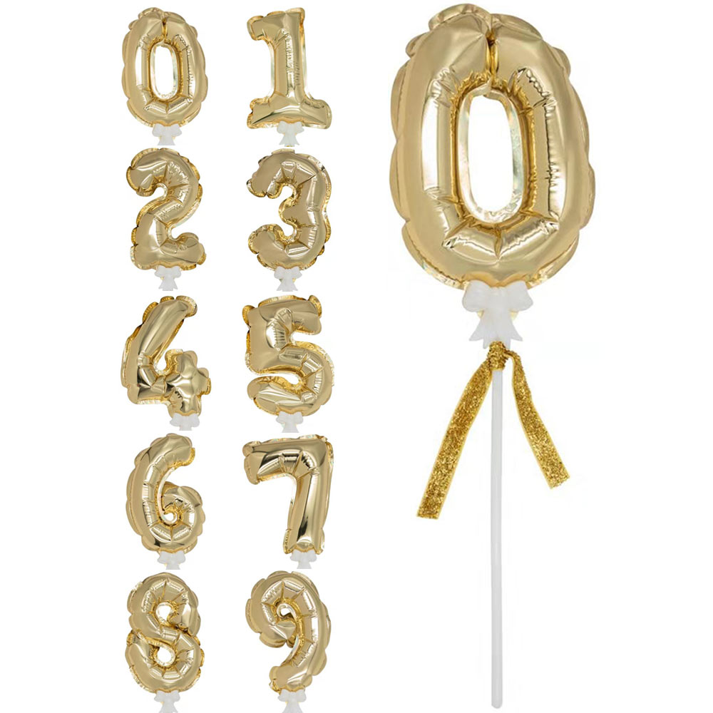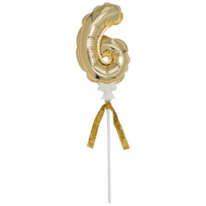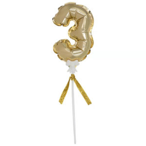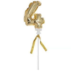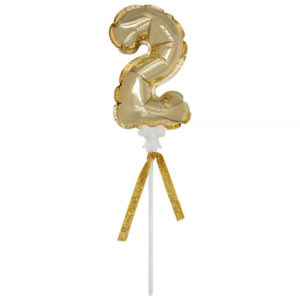 בלון מיני בצורת ספרות (לבחירה) בצבע זהב, על מקל עם סרט מנצנץ וסוגר בצורת פפיון. ניתן לשלב כקישוט על עוגה, קאפקייקס או בכל סטאפ מעוצב.
