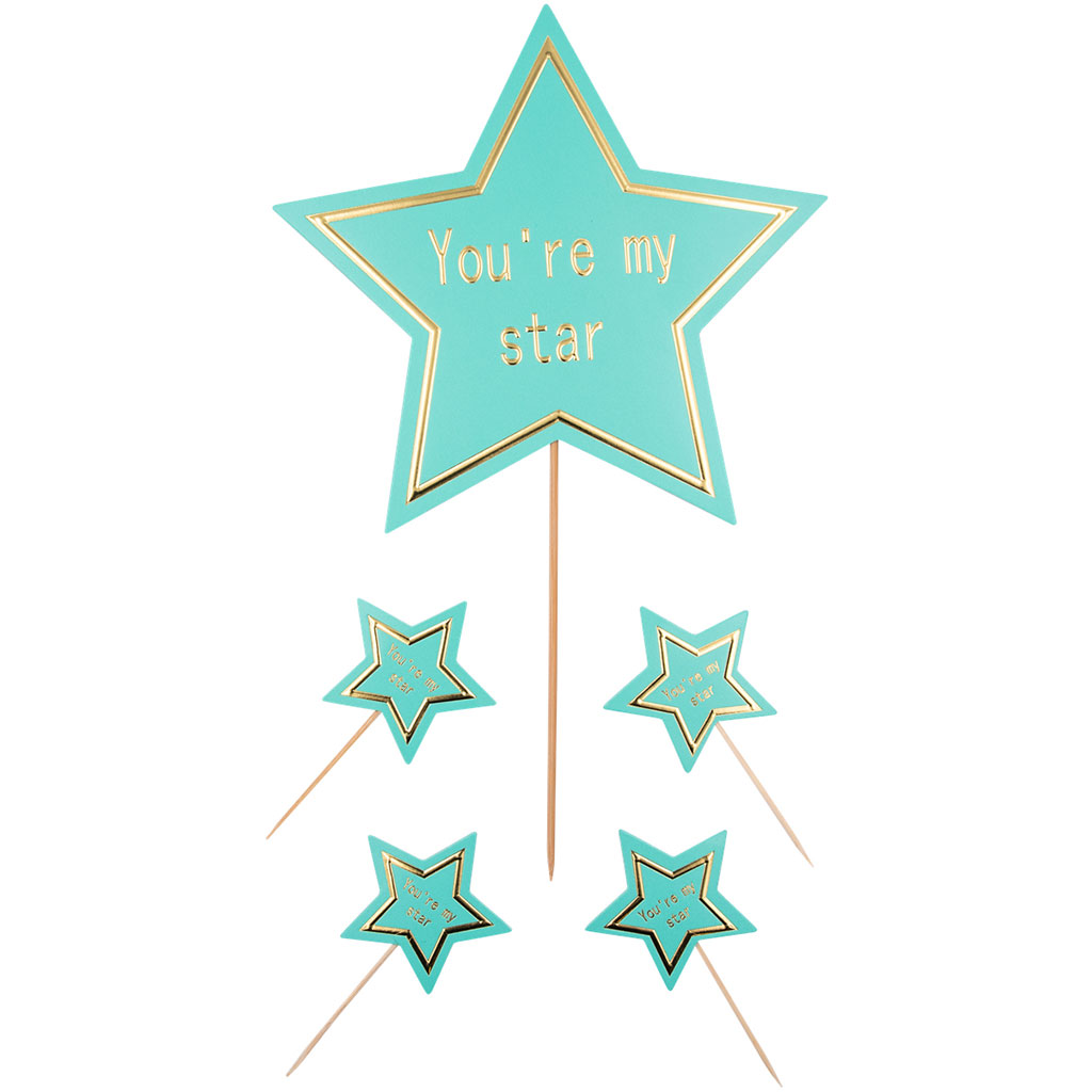 מארז טופרים מרהיב לקישוט העוגה, הקאפקייקס ועוד. הסט מורכב מקיסם כוכב גדול ועוד 6 קטנים, כאשר על כולם הכיתוב You ' re my star.