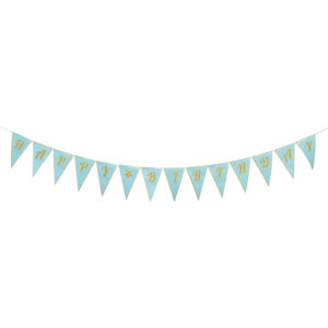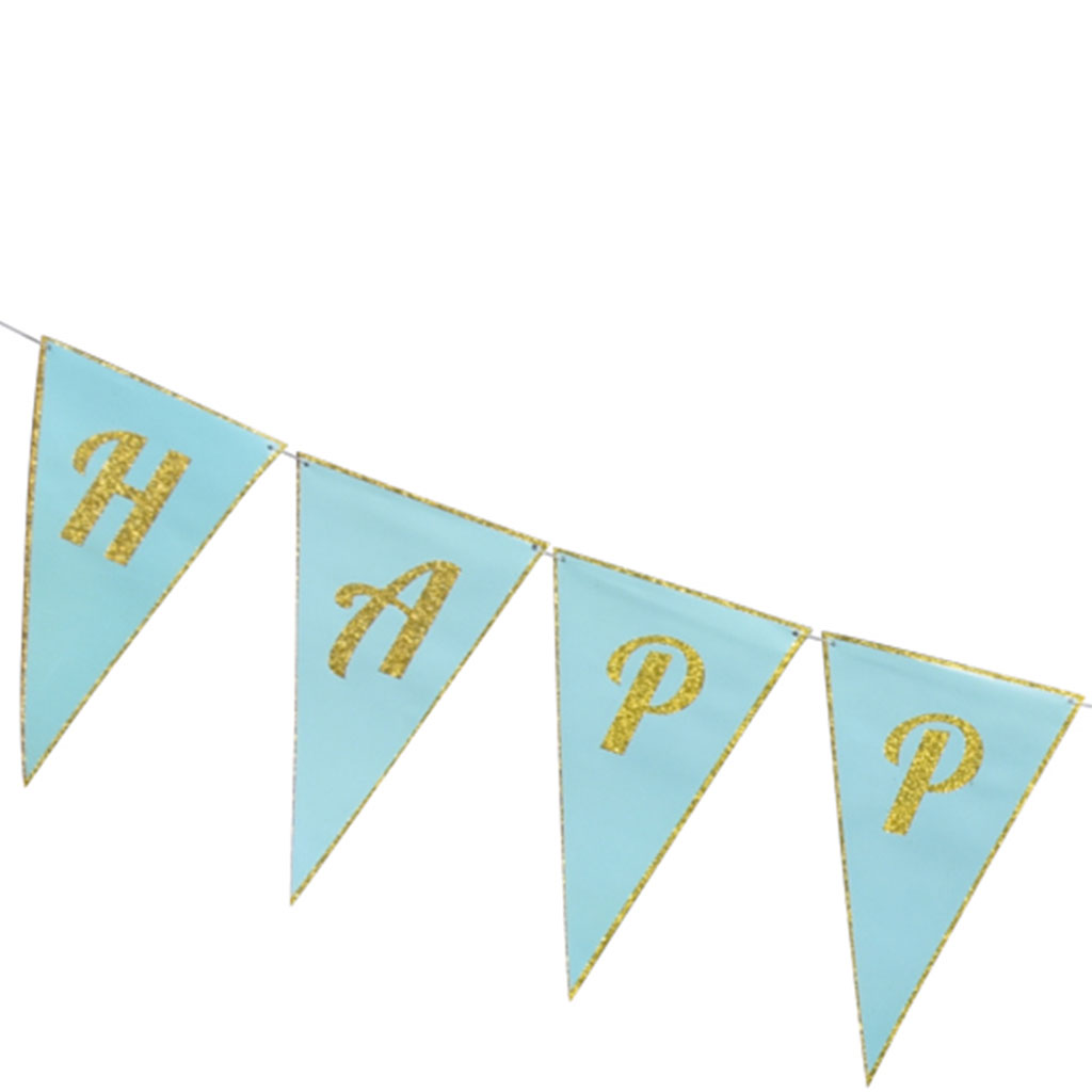 שרשרת דגלים לתליה, בצבע ירוק מנטה, עם כרזת HAPPY BIRTHDAY המוטבעת בצבע זהב גליטר מנצנץ. שרשרת מרשימה מאוד שלא תשאיר אף חוגג יום הולדת אדיש!