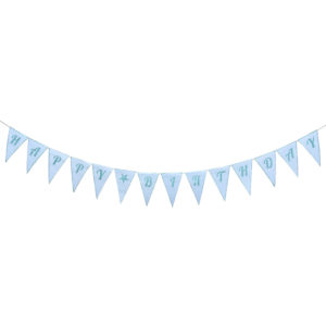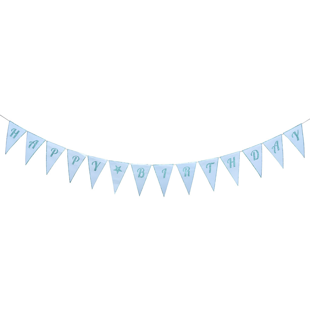 שרשרת דגלים לתליה, בצבע תכלת, עם כרזת HAPPY BIRTHDAY המוטבעת בצבע טורקיז גליטר מנצנץ. שרשרת מרשימה מאוד שלא תשאיר אף חוגג יום הולדת אדיש!