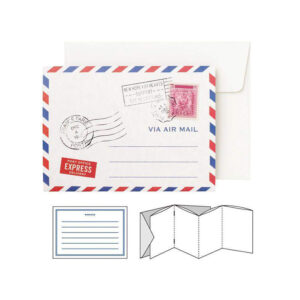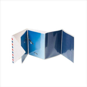 אלבום אקורדיון לתמונות עם כרטיס ברכה מעוצב כמעטפת דואר אוויר.