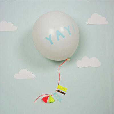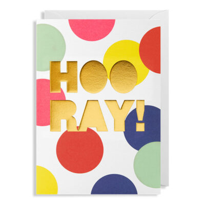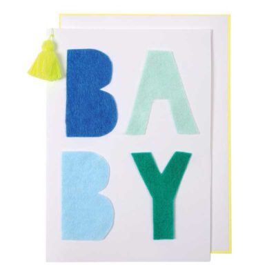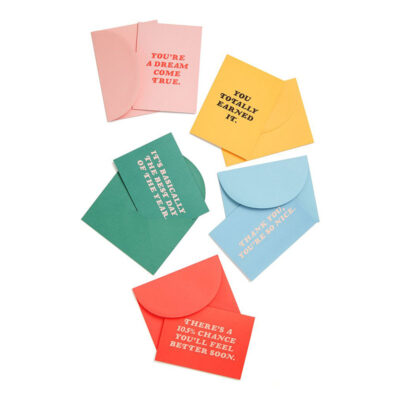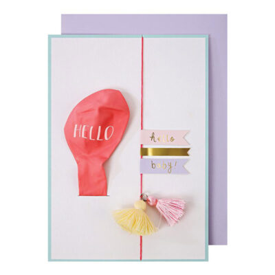 כרטיס עם קשת בחיתוך צורני, המעוטרת בפויל זהב, ומעטפה בצבע תכלת פסטל.