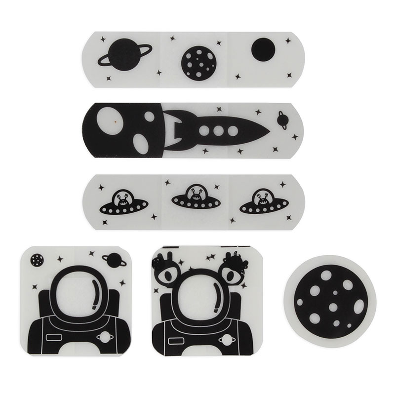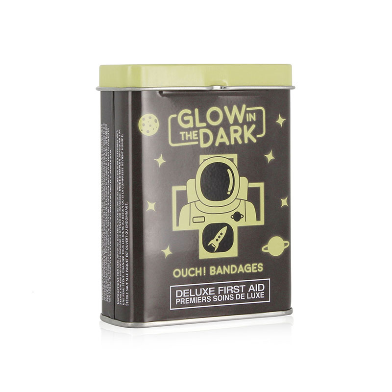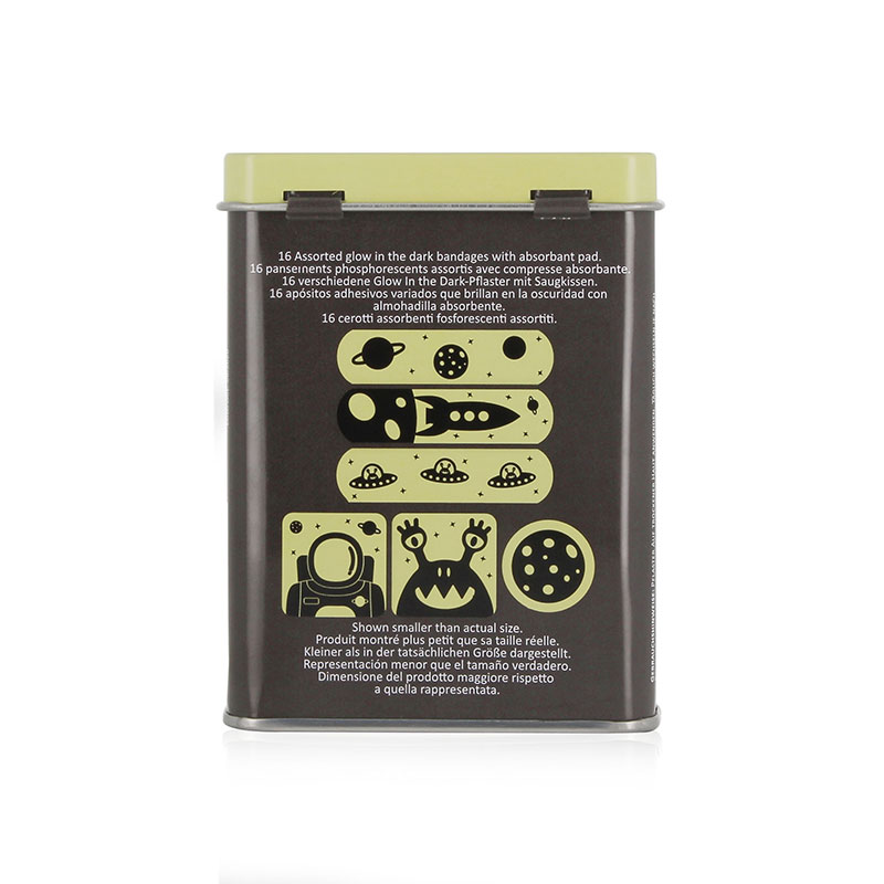 קופסת פח קטנה וחמודה המכילה 16 פלסטרים בשישה עיצובים של אסטרונאוטים, חייזרים וחלליות – שהם סופר מגניבים גי הם גם זוהרים בחושך. הכל כדי לגרום לקטנטנים לחייך שוב כמה שיותר מהר!