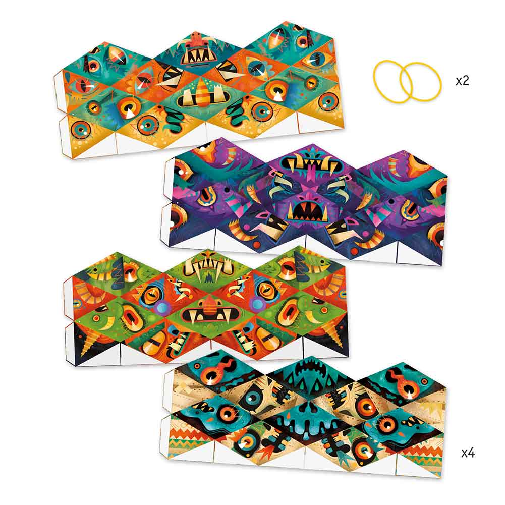 אומנות קיפולי הנייר מבית המותג DJECO. הפעם מקפלים ומחברים ליצירת מפלצות. בכל פעם הדמויות מתחלפות – הוראות מפורטות מצורפות.
