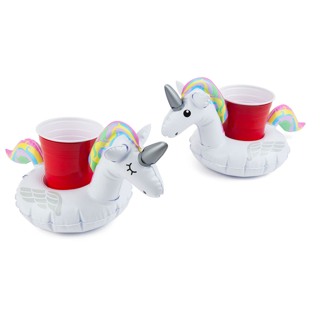 מארז שני חדי קרן מתנפחים לכוסות, מבית המותג Big Mouth הידוע במתנפחים המעוצבים והאיכותיים שלו.