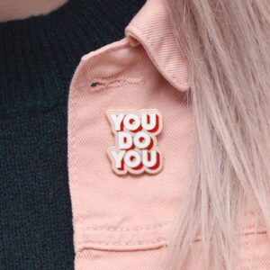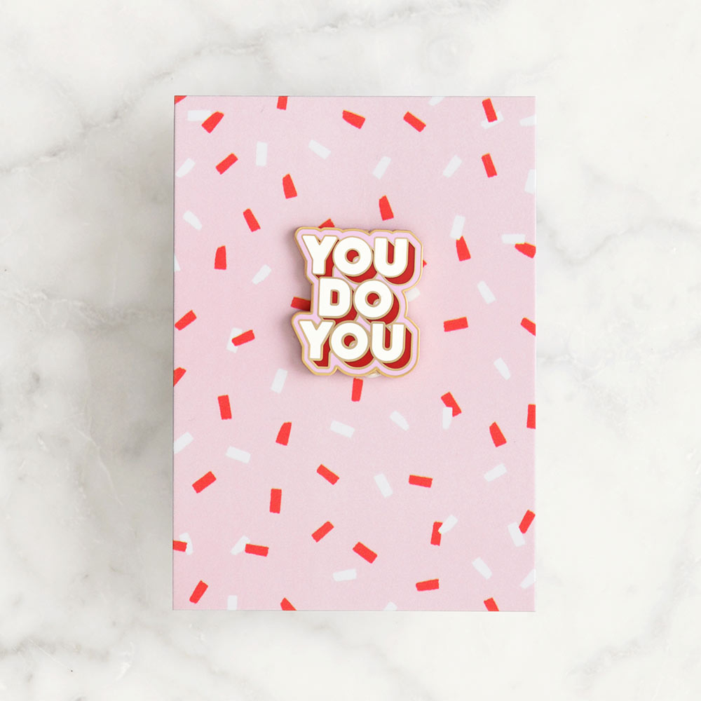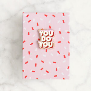 A lovely enamel pin, featuring our 'You Do You' design. Made from red, white and pink hard enamel and matt gold colour metal with a rubber clasp.