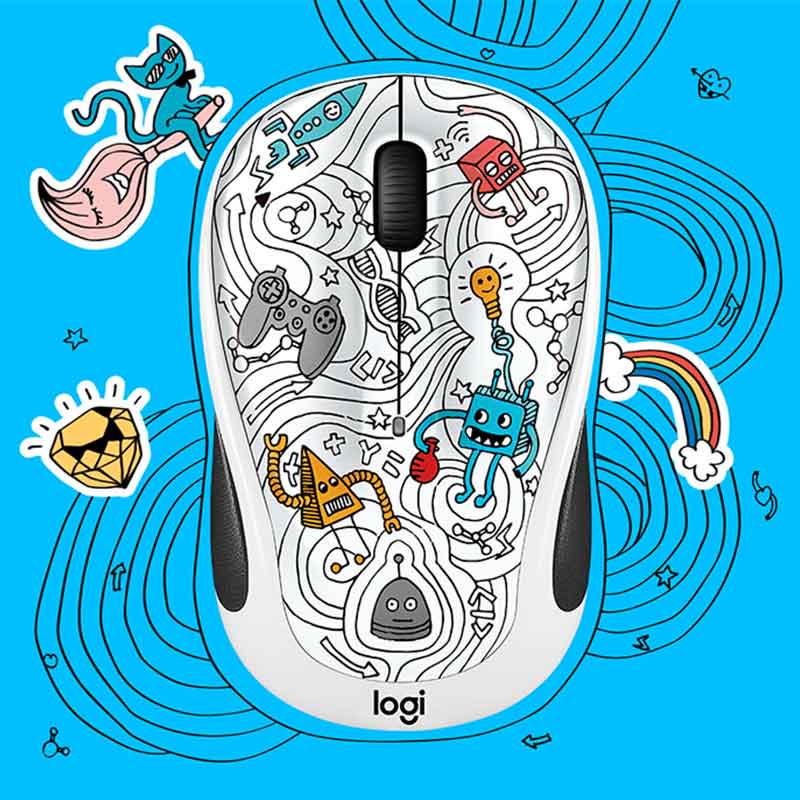 עכבר אלחוטי M238 מהסדרה האייקונית Doodle Collection של לוג'יטק. משלב נוחות עבודה, דיוק והמון סטייל.