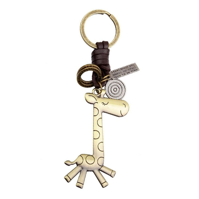 מחזיק מפתחות ג'ירפה, משולב עור טבעי וברונזה.