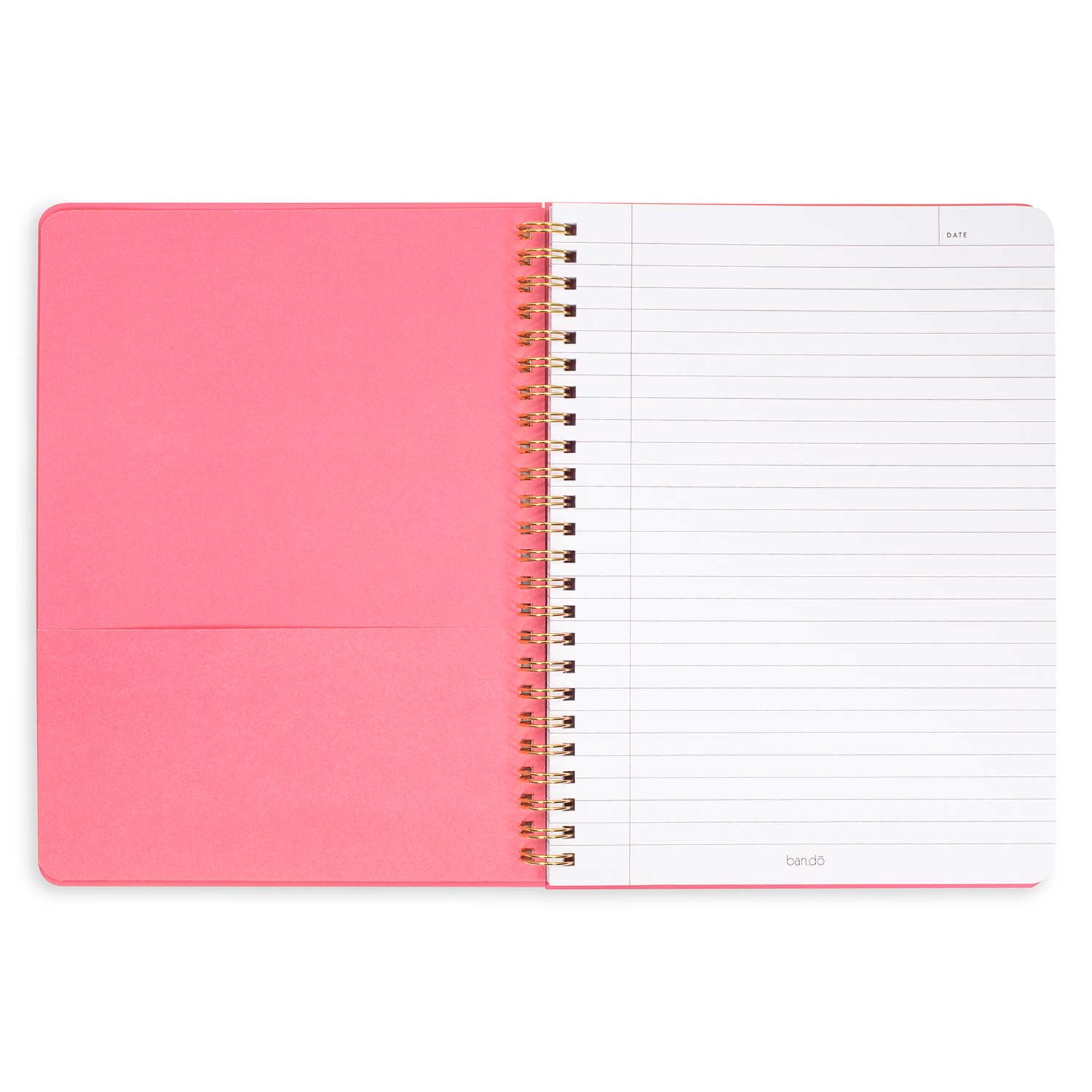 מחברת ספירלה עם כריכה קשה, המכילה 160 עמודי שורה מחוררים שמאפשרים תלישה מהירה ואסתטית. למחברת יש פינות מעוגלות וכיס פנימי לשמירת פתקים, מסמכים, כרטיסי ביקור וקבלות. בכל עמוד יש מקום לכתיבת תאריך בחלק העליון של הדף. באמצע המחברת תמצאו חוצץ עם משפט מעורר השראה!