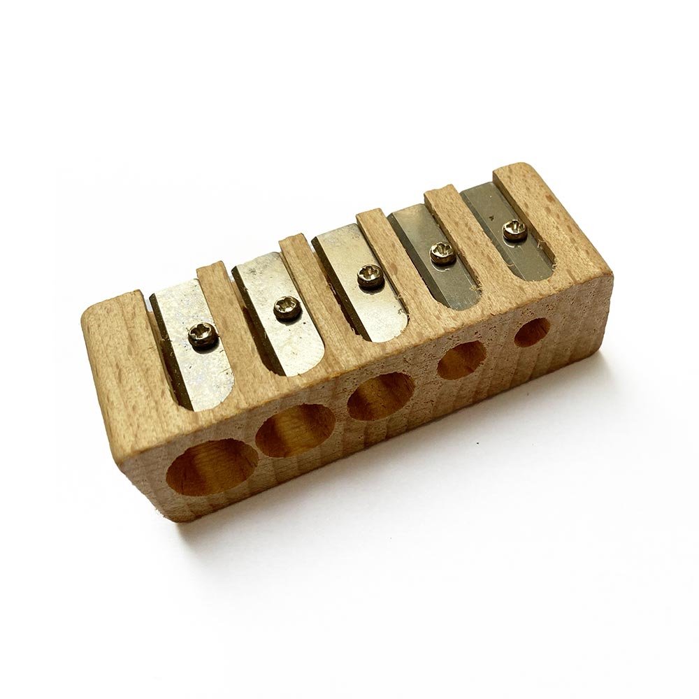 מחדד עשוי עץ אשר מתאים לכל סוגי העפרונות הסטנדרטיים, עפרונות עבים ודקים במיוחד.