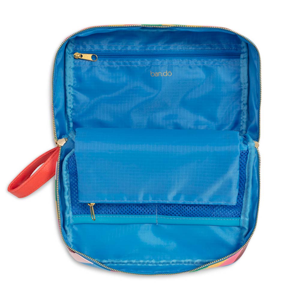 עשוי קנבס מצופה, מה שאומר שניתן לנגב ממנו לכלוך בקלות, בפנים התיק בטנת ניילון. לתיק ידית לאחיזה ותליה נוחה, נסגר ברוכסן כפול והוא עשיר בכיסים: תא אחסון גדול עם כיס קיר ומפריד מרכזי עם רשת וכיס חיצוני עם תיק תק. ככה יוצאים לחופשה.