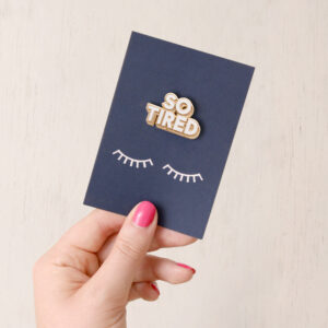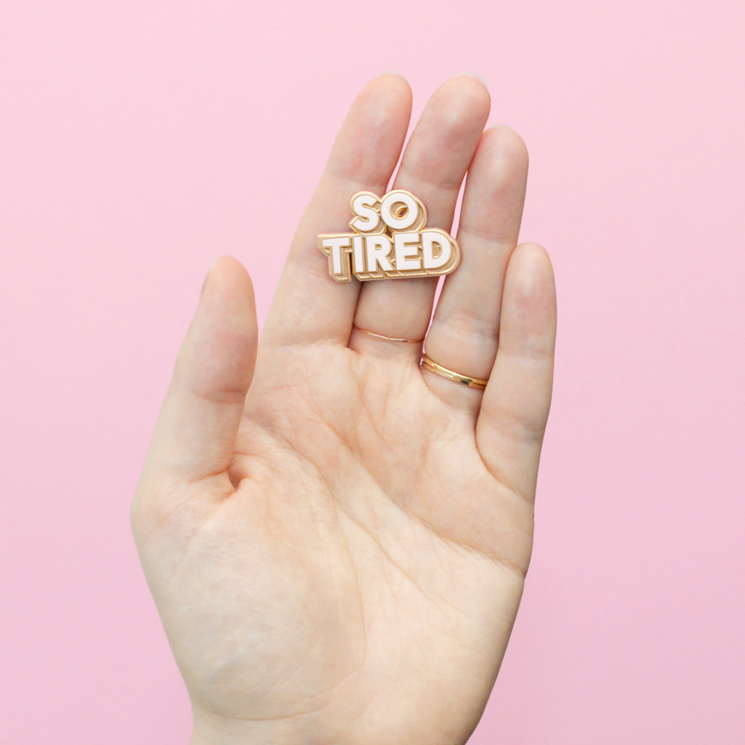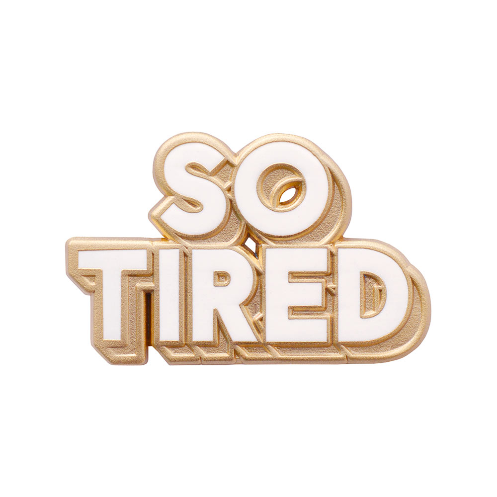 How tired are you? So tired. So tired that I have to wear this So Tired enamel pin to let people know just how tired I am.